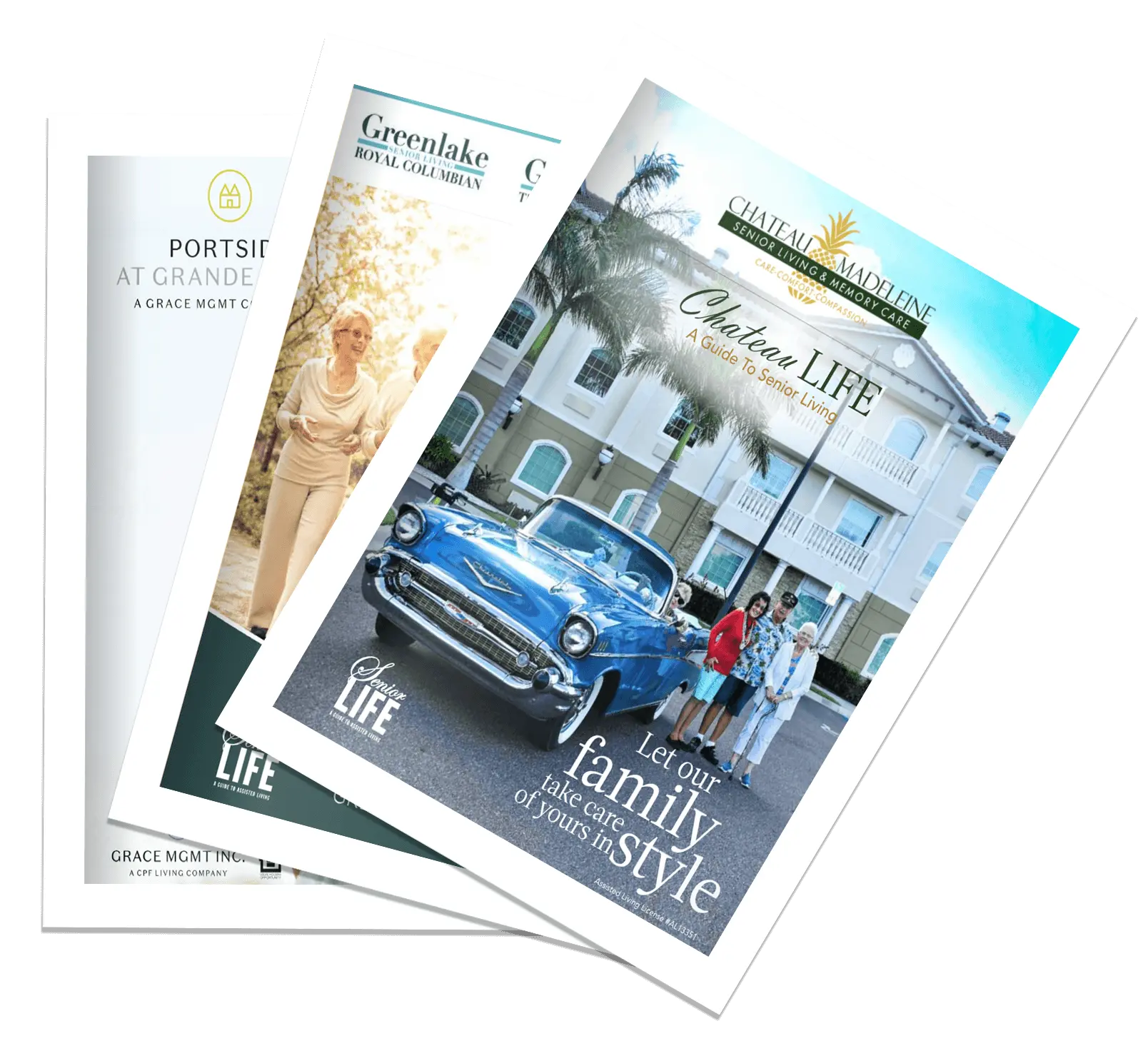 Custom-designed to showcase the unique features of your community, these guides serve as a valuable tool for promoting its exclusivity. Highlighting the various levels of care and lifestyle enhancements available to residents, your branded guide also offers extensive guidance and support on a wide range of retirement and senior living topics specific to your community.